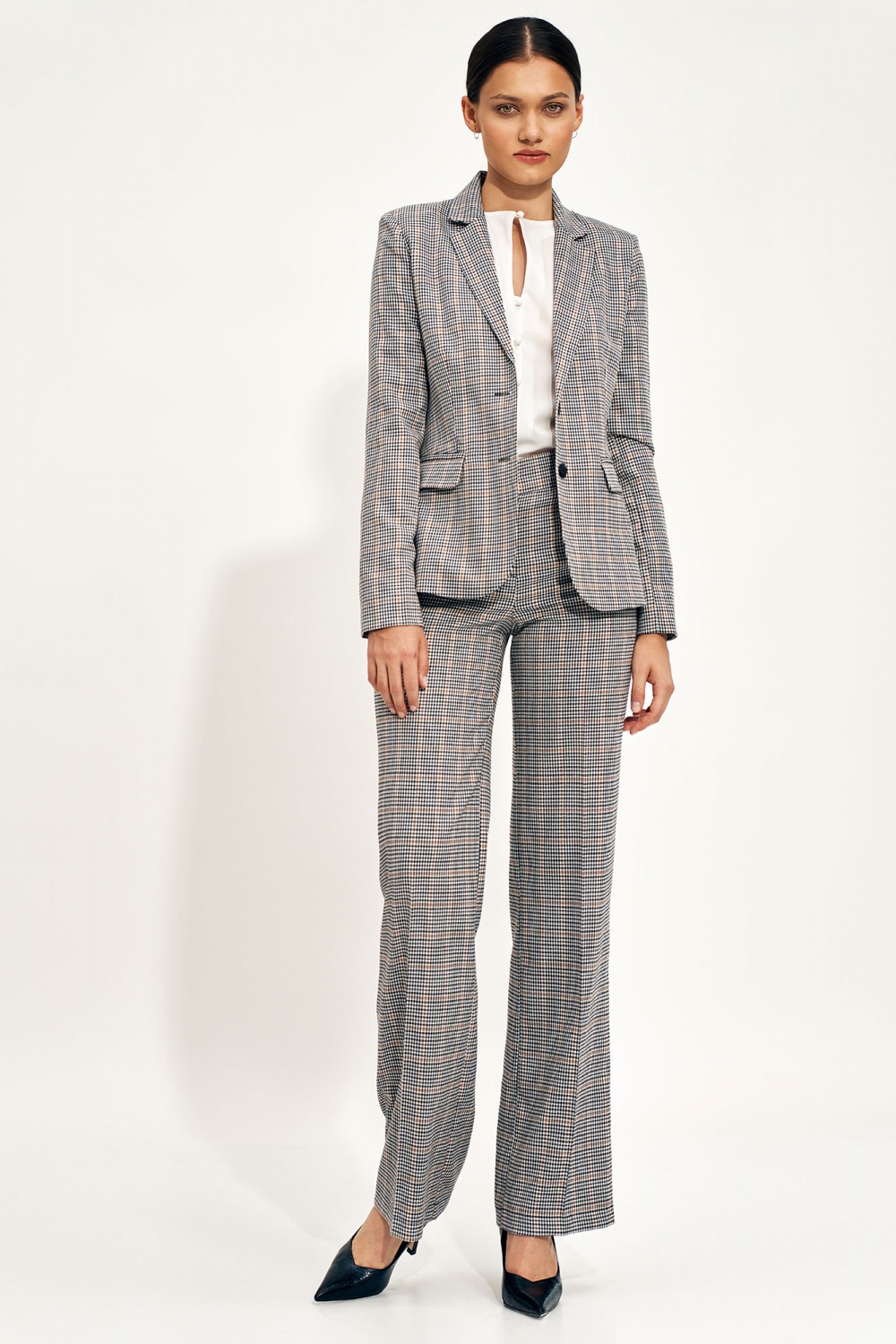 Een klassieke blazer met een casual snit die u niet alleen voor uw werk maar ook voor dagelijks gebruik nodig hebt. U kunt het succesvol combineren met jeans, een pakbroek of een avondjurk. Het jasje is zwaar getailleerd en heeft een tweeknoopssluiting aan de voorkant. Samen met een wijde pantalon vormt het een elegante set in softoffice-stijl.