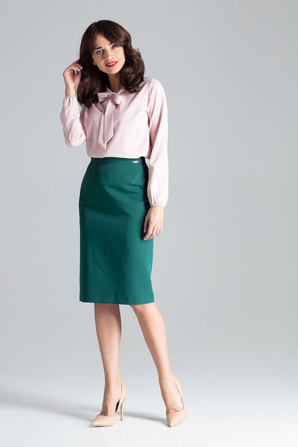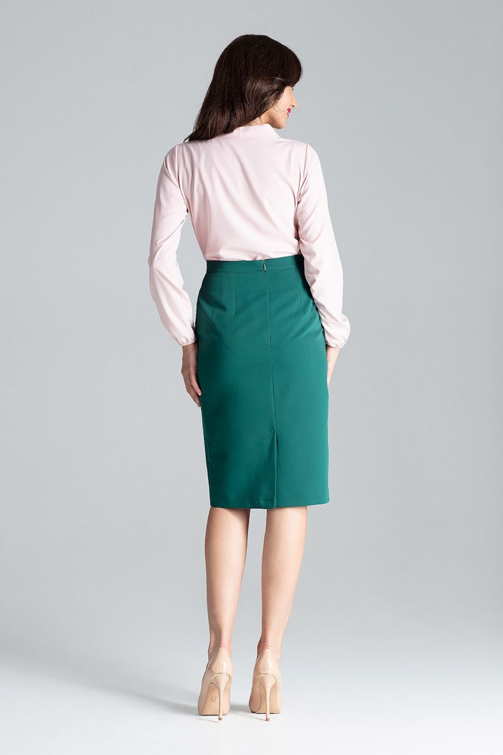 Aansluitende rok met een overlapping aan de achterkant. Past perfect bij een elegante blouse. Model met ritssluiting aan de achterkant.